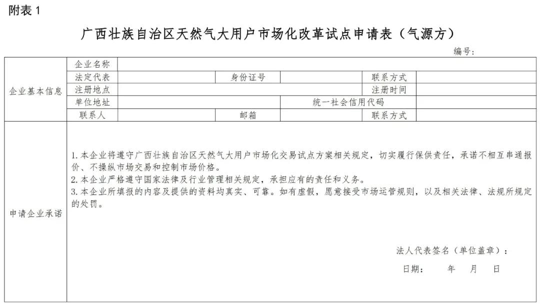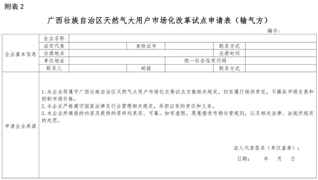 2020年12月31日,广西天然气大用户市场化改革试点实施方案(桂发改油气〔2020〕1397号)印发,方案包含指导思想、基本原则、参与改革试点主体、市场交易及代输费、各方责任、公平开放、管理措施、组织实施等内容。具体内容如下: